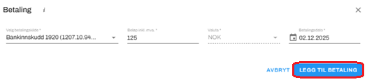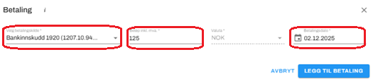Hvis fakturaen er betalt i flere omganger, gjentar du stegene for hver enkelt betaling med riktig beløp og dato.