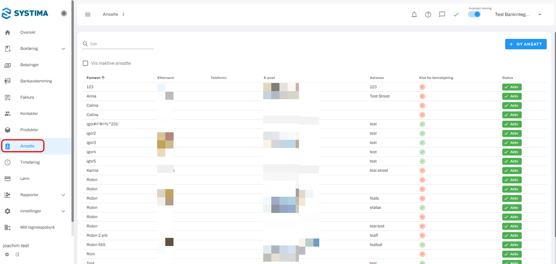 Velg ønsket ansatt, eller opprett Ny ansatt.