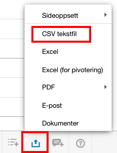 4: Nederst til høyre er det et ikon for nedlastning du må trykke på, så velg "CSV Tekstfil"