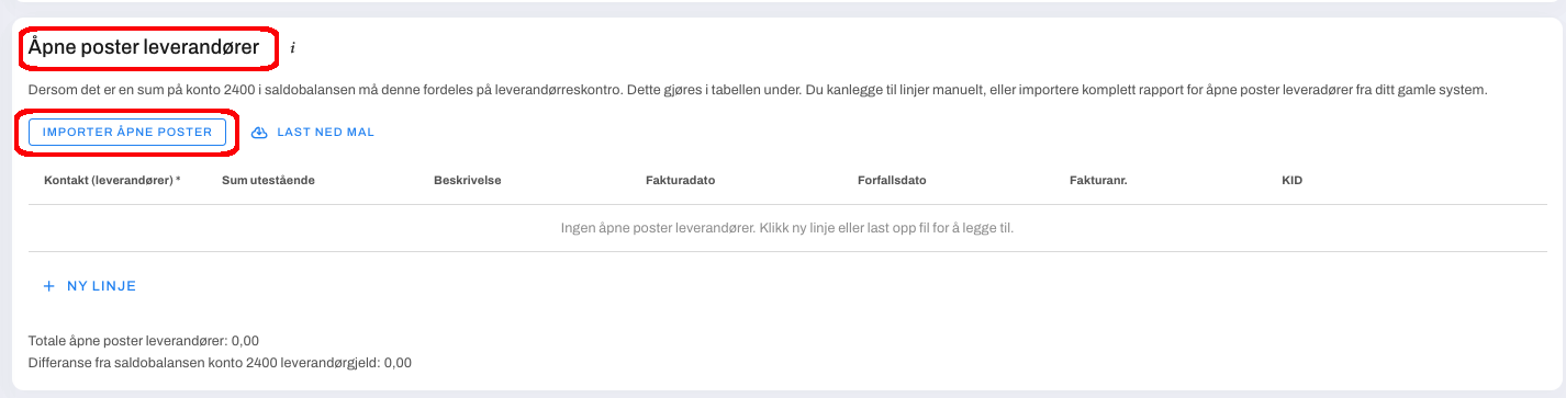 6: I kortet som har overskrift "Åpne poster leverandører" trykker du på "Importer åpne poster"