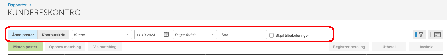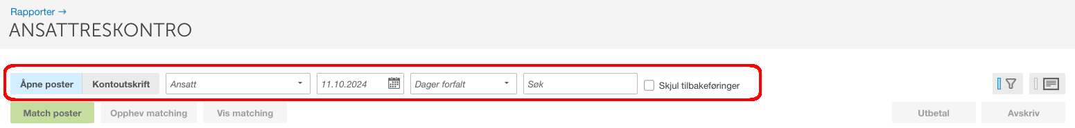 3: Dobbeltsjekk at du har valgt "Åpne poster" øverst til venstre og ikke har verdier i noen av filtrene