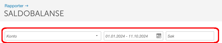 3: Dobbeltsjekk at du har riktig periode i datofeltet, slik at du får utgående saldo siste dagen du bruker PowerOffice Go. Du skal ikke ha noen verdier i "konto" eller "søk"