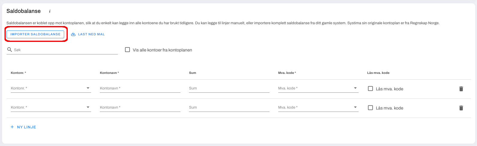 6: I kortet som har overskrift "Saldobalanse" trykker du på "Importer åpne poster"