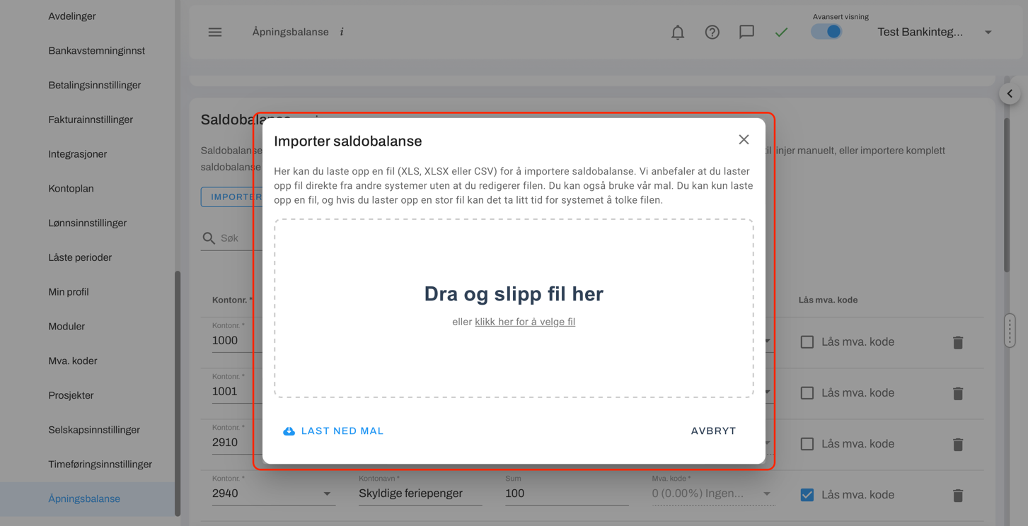 3. Når du har trykket på «importer saldobalanse» vil denne fanen dukke opp.