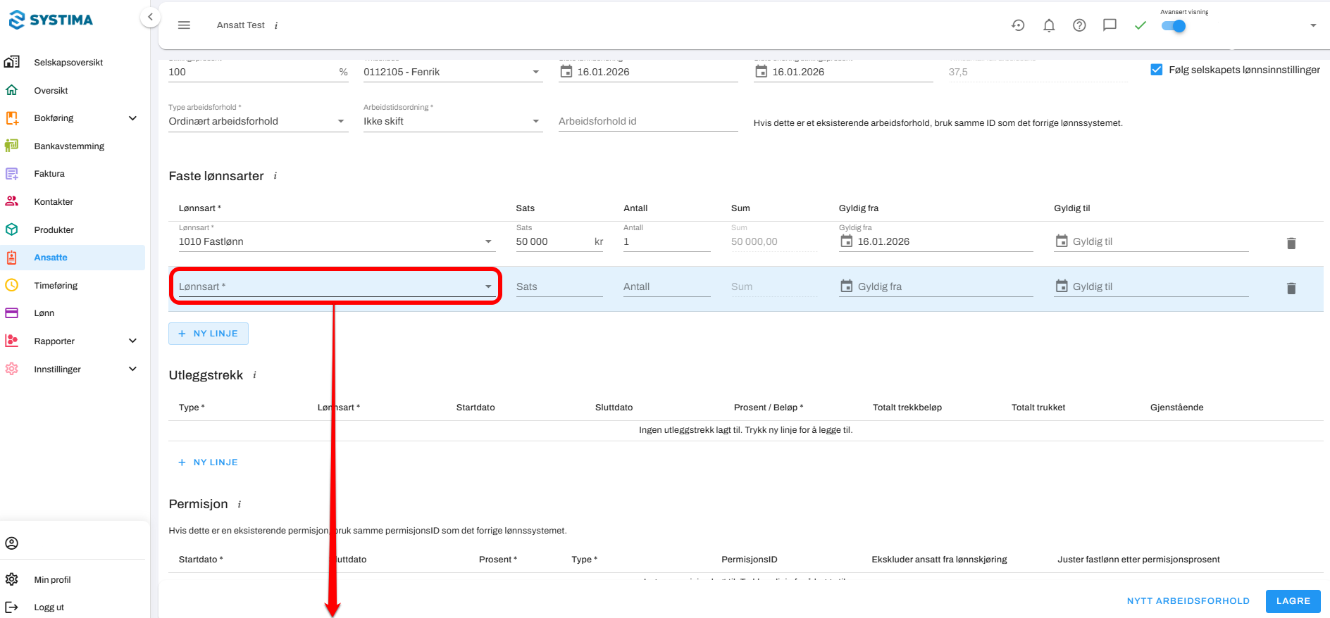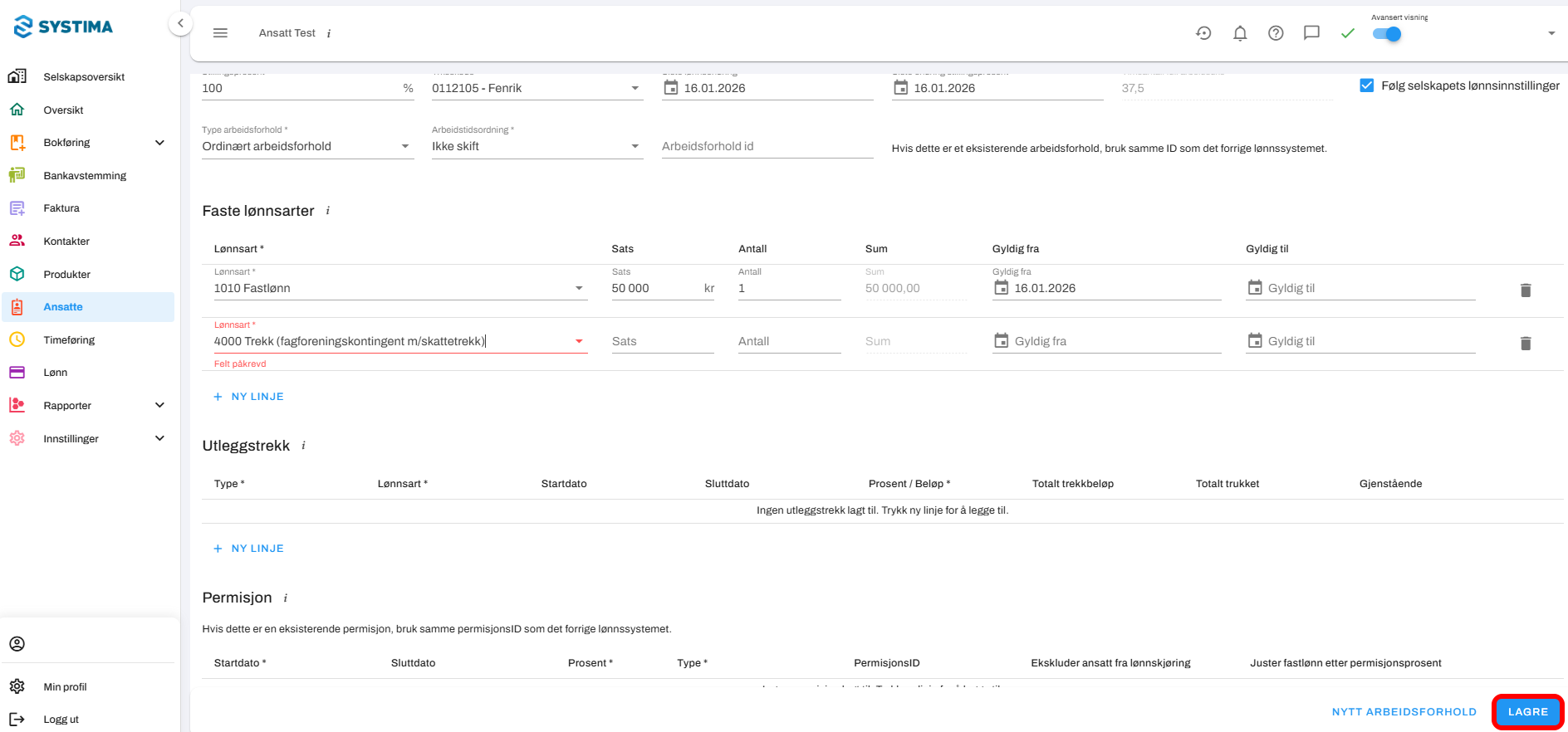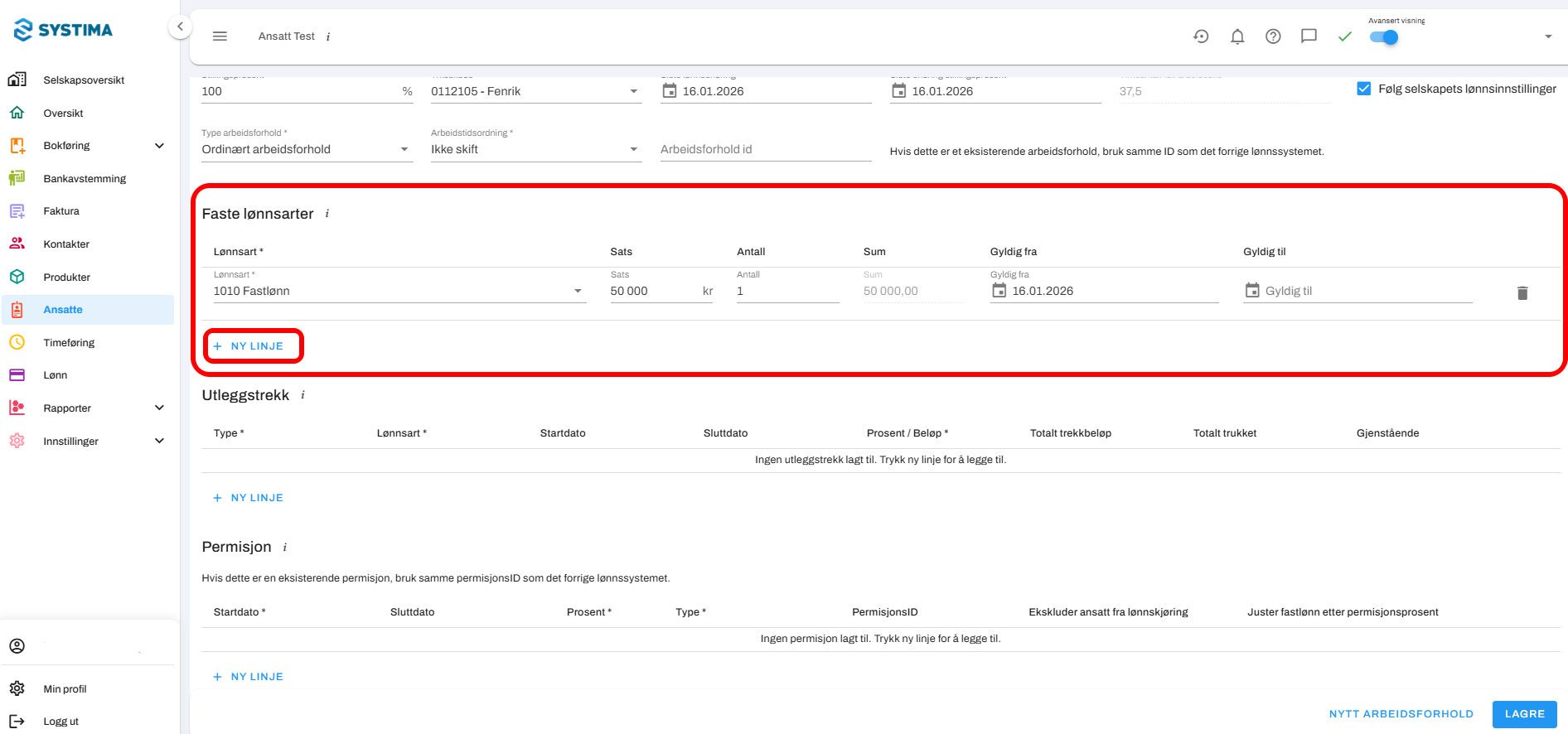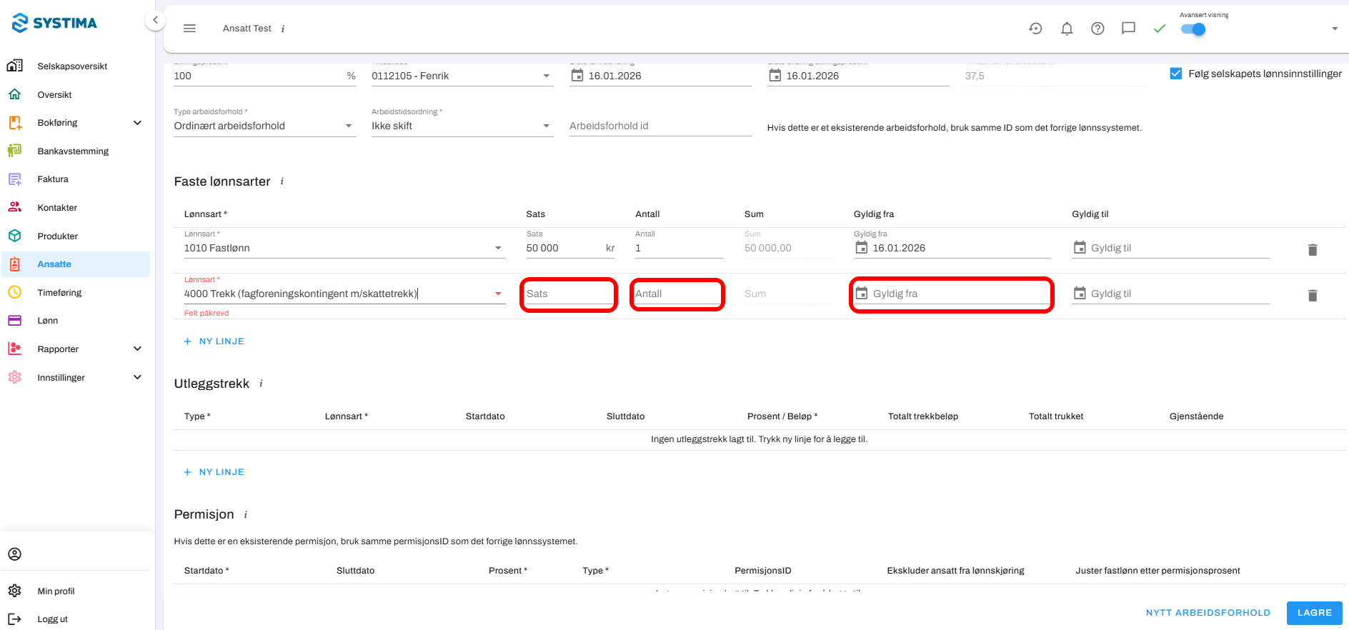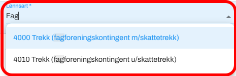 Når du oppretter ny lønn, vil fagforeningstrekket automatisk komme opp som en egen lønnslinje.