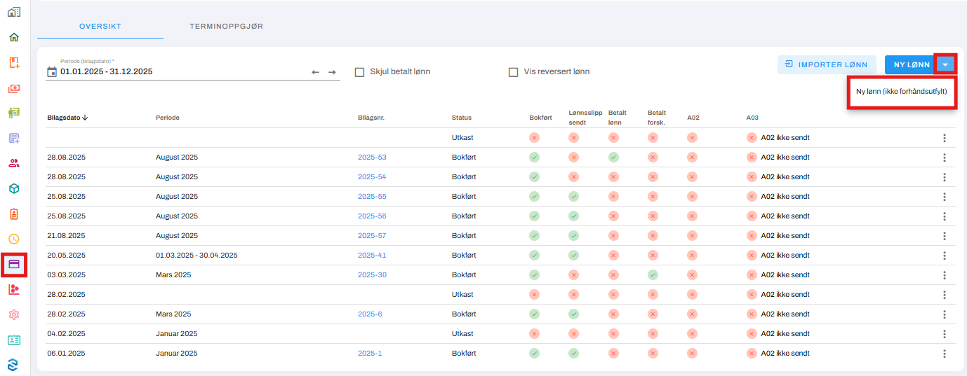 Klikk på pilen til høyre for Ny lønn, og velg Ny lønn (ikke forhåndsutfylt).