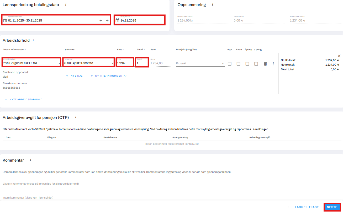Opprett så en ny lønn ved å: