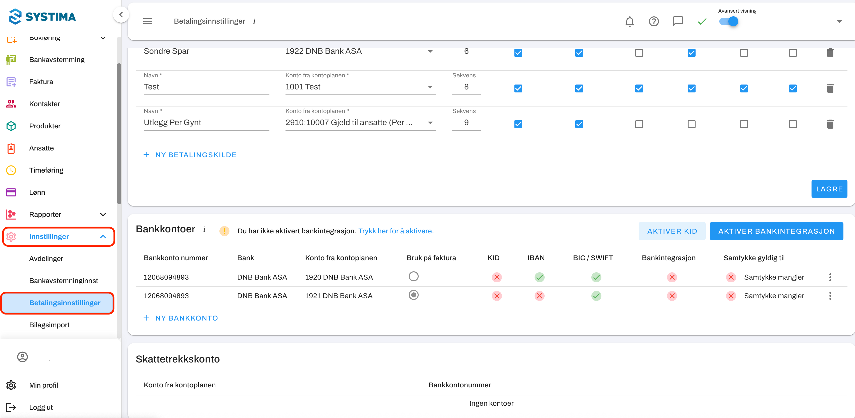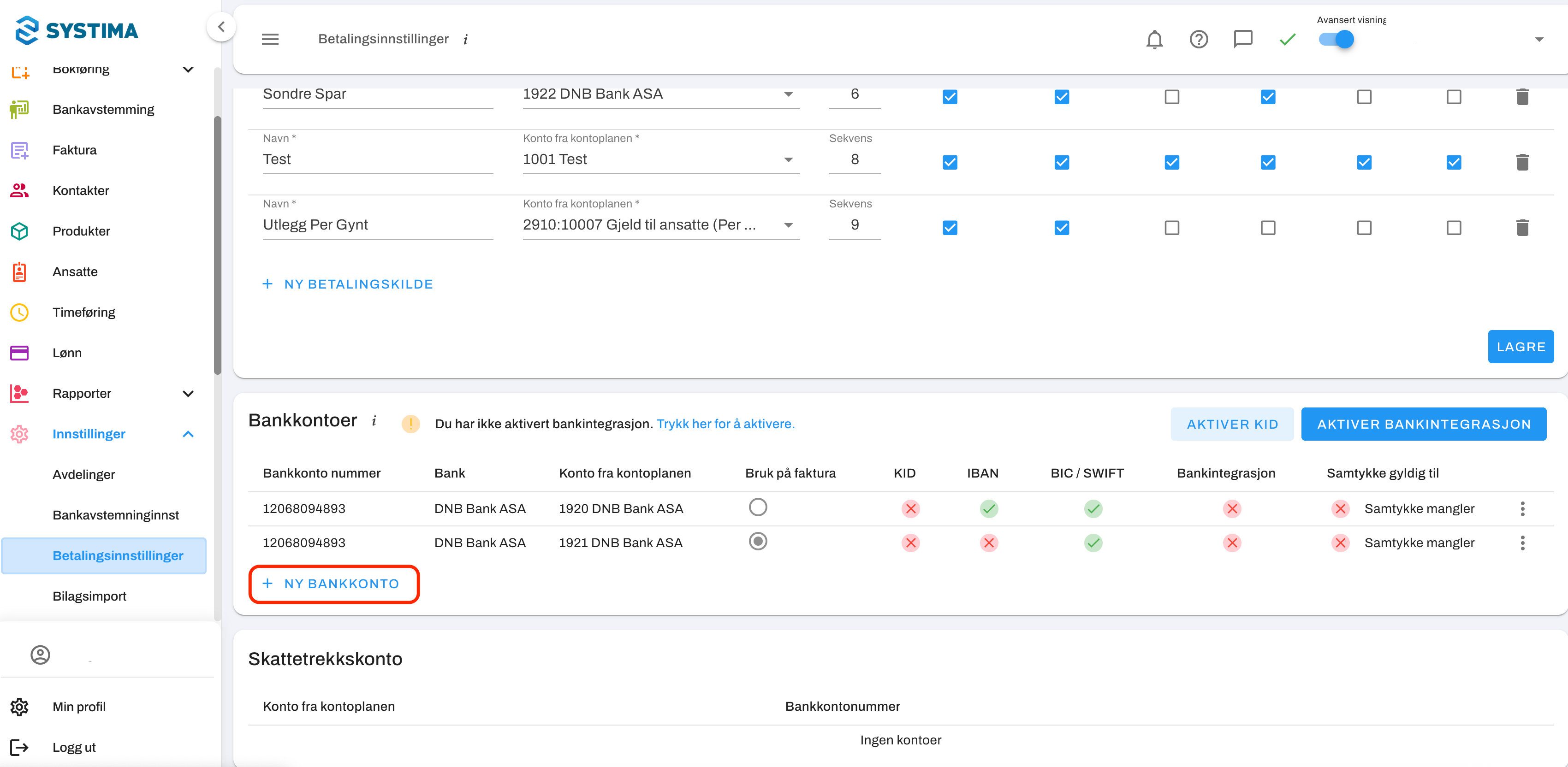 Dersom du allerede har en aktiv bankintegrasjon og ønsker å legge til en ny bankkonto, kan du enkelt gjøre dette via innstillinger.