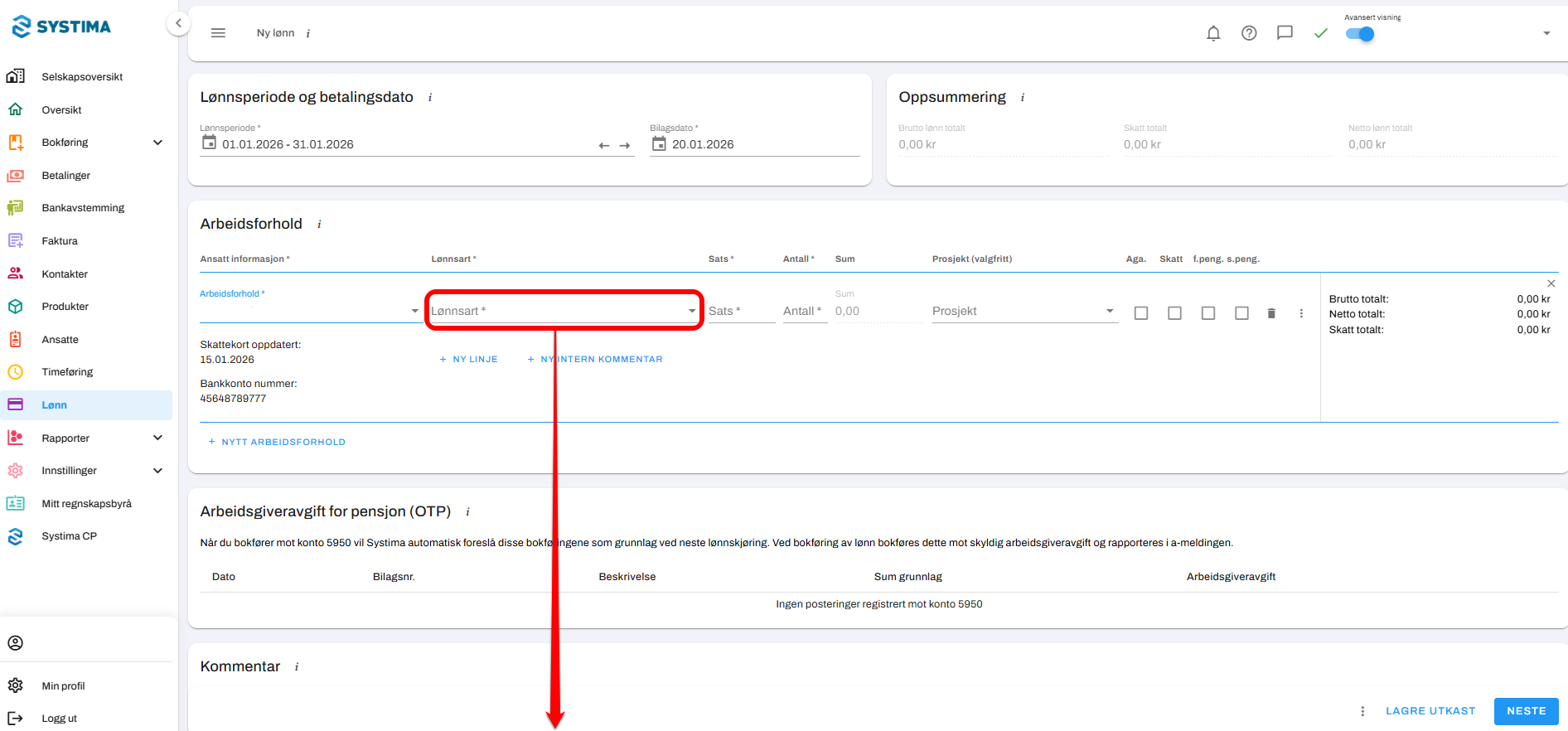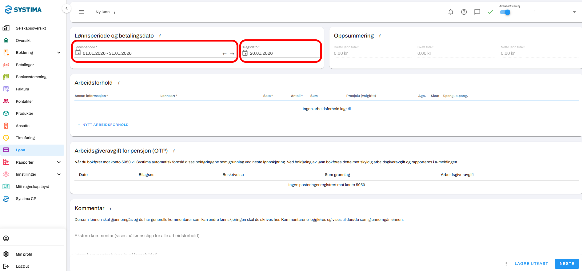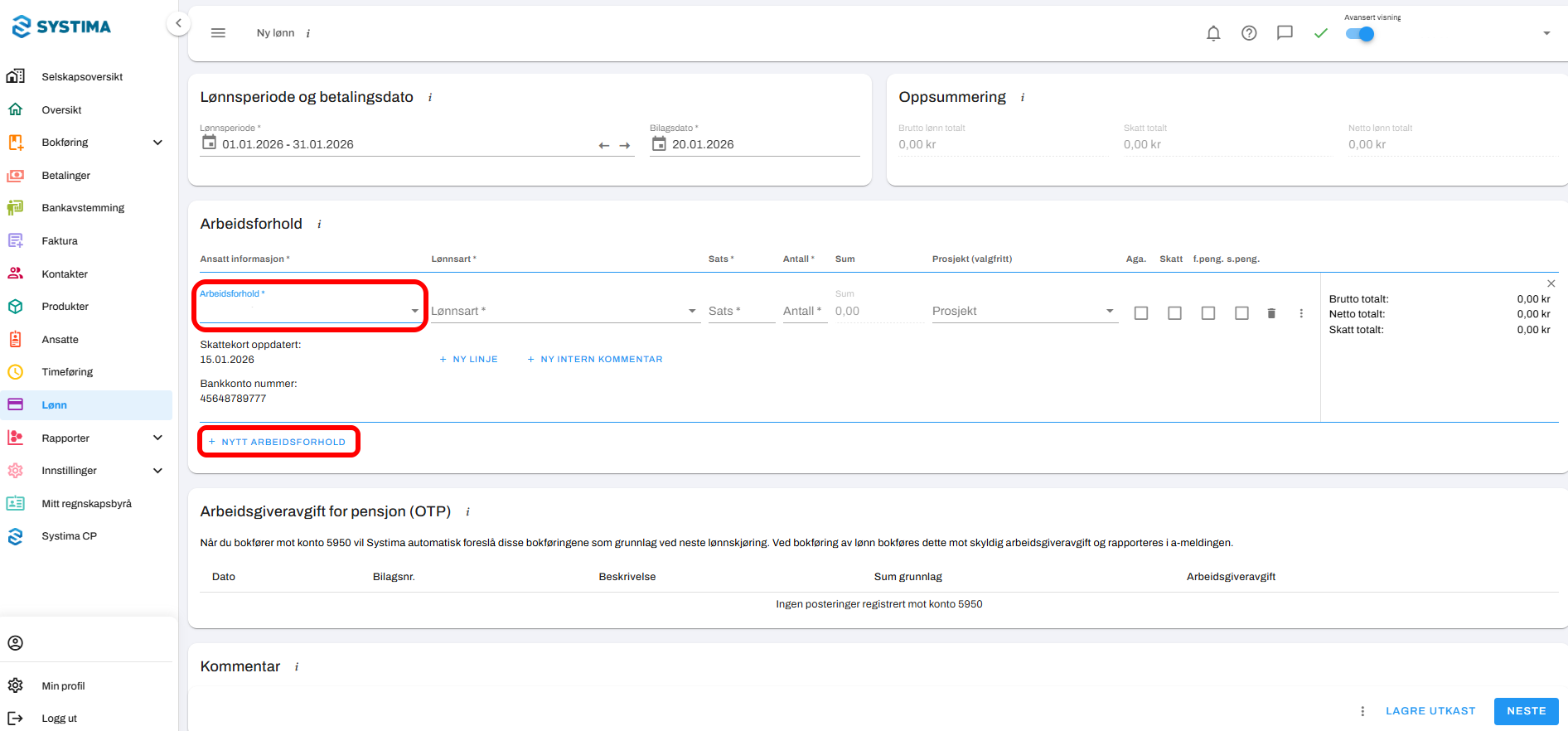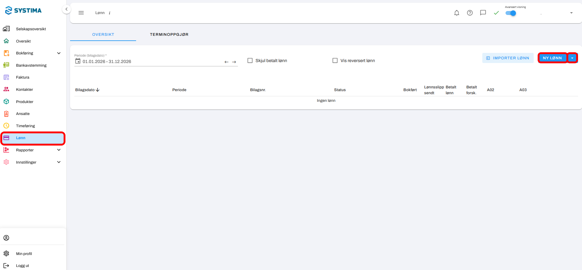 1. Gå til Lønn → Ny lønn: