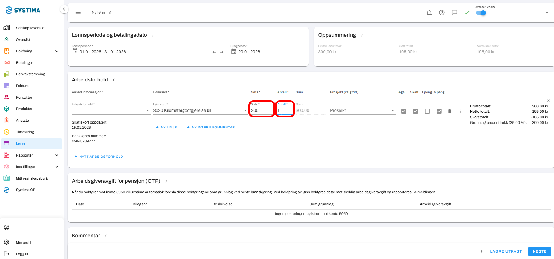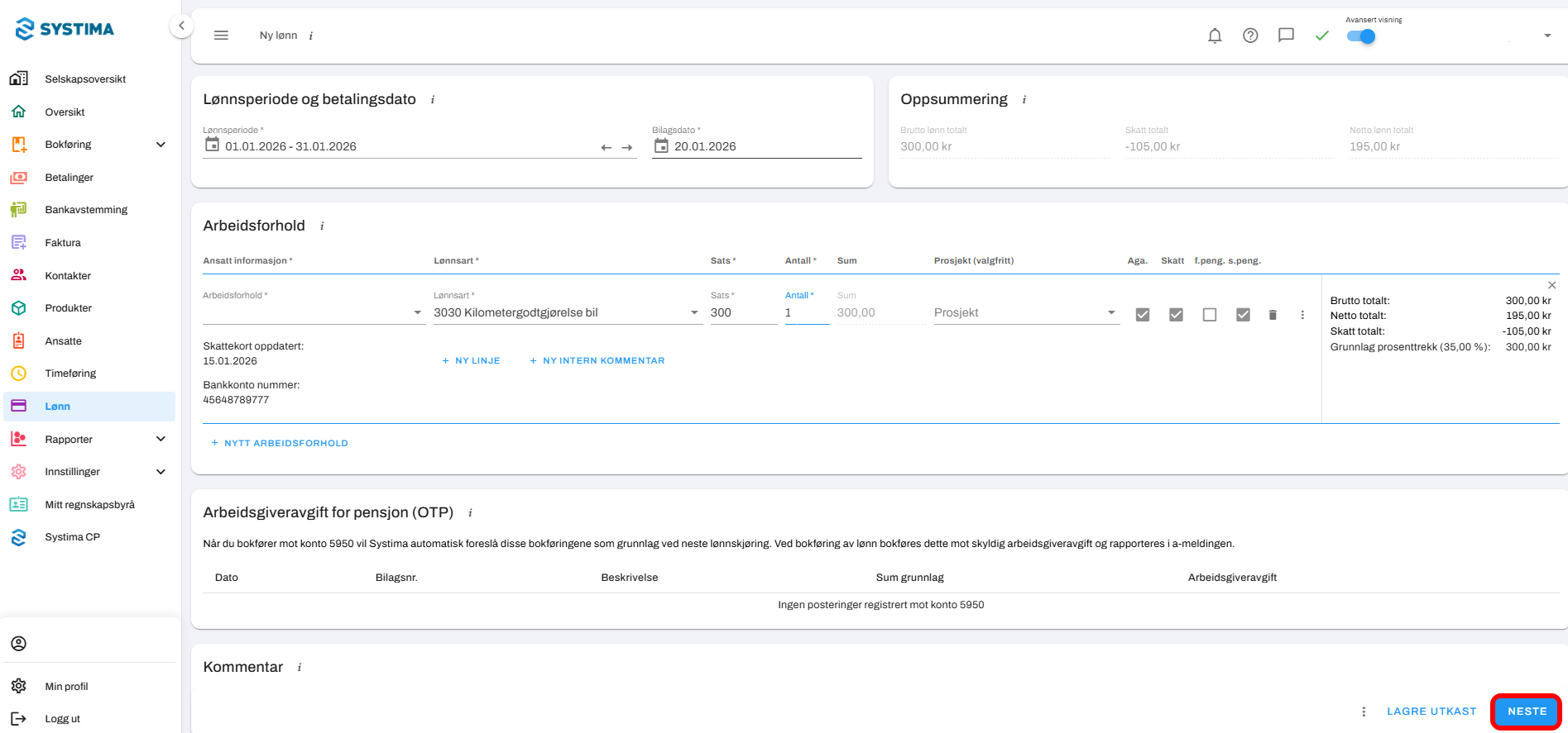 6. Klikk Neste, og fullfør normal lønnsflyt.