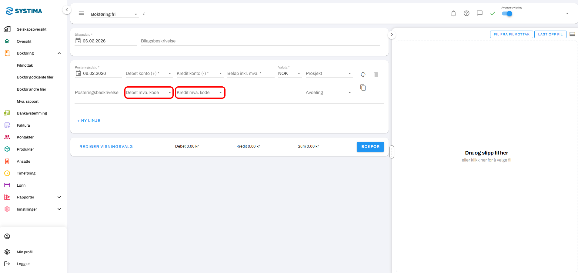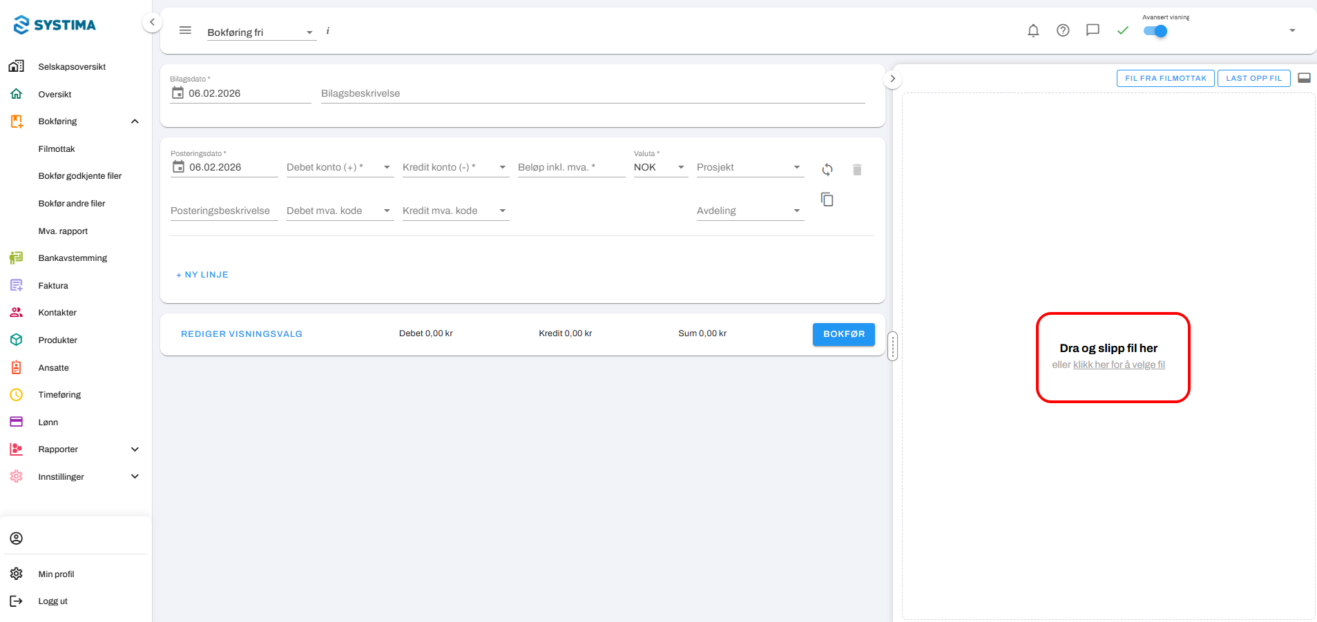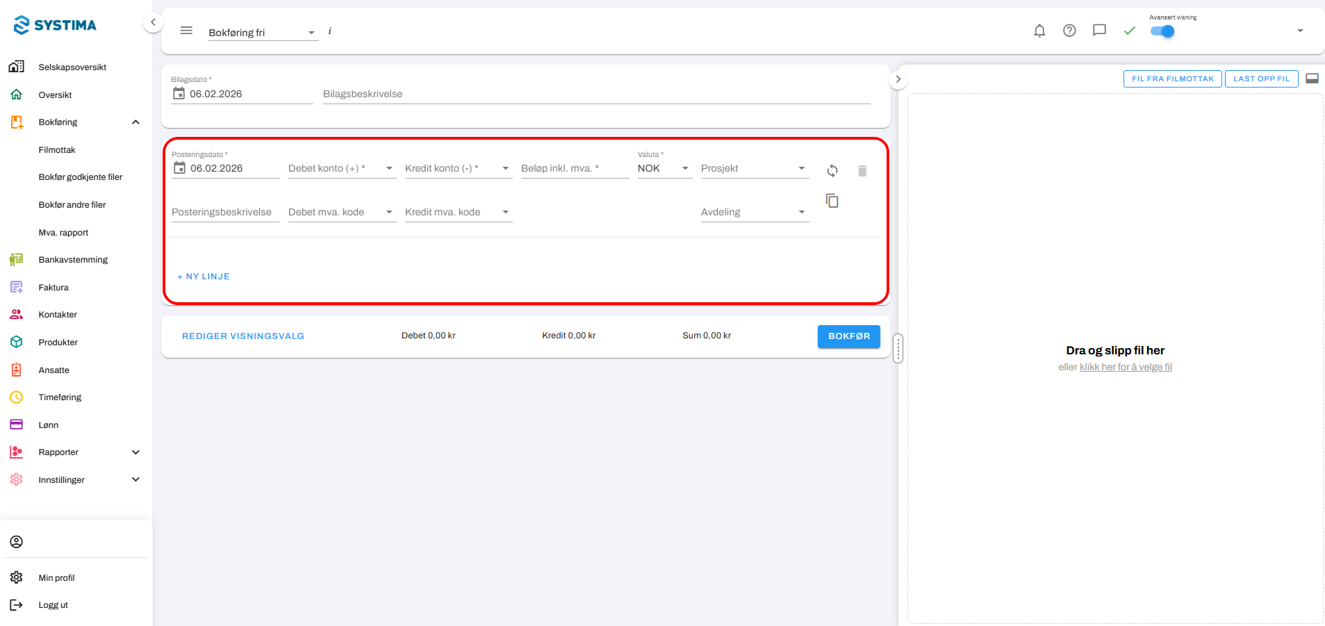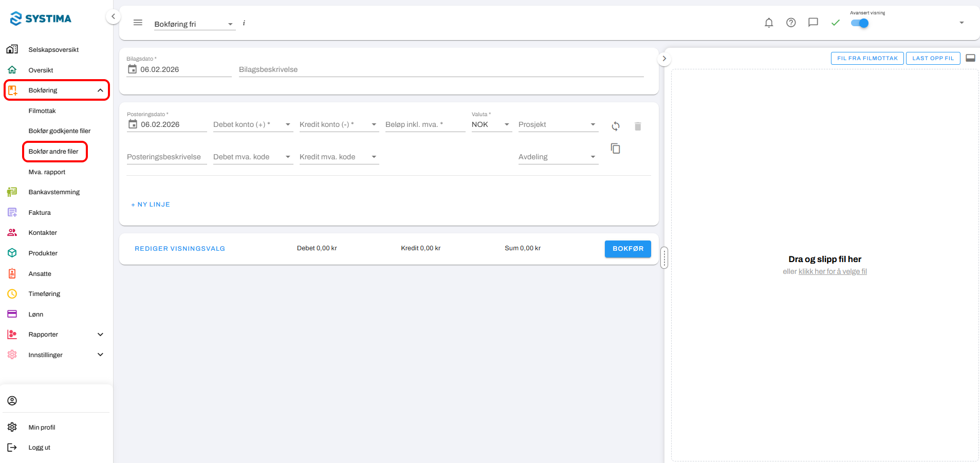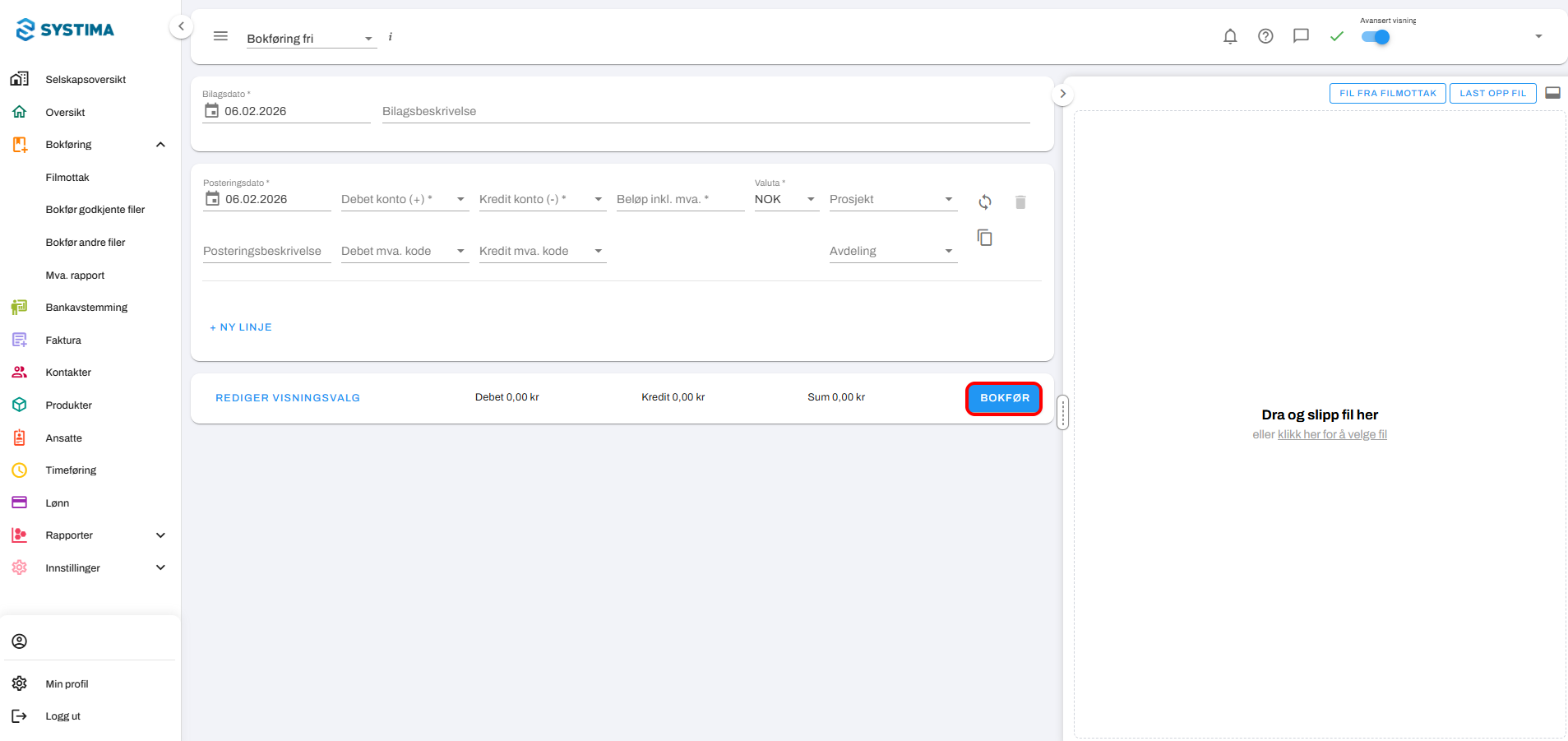 Steg 2. Velg Bokføring fri øverst til venstre, ved siden av menylinjen.