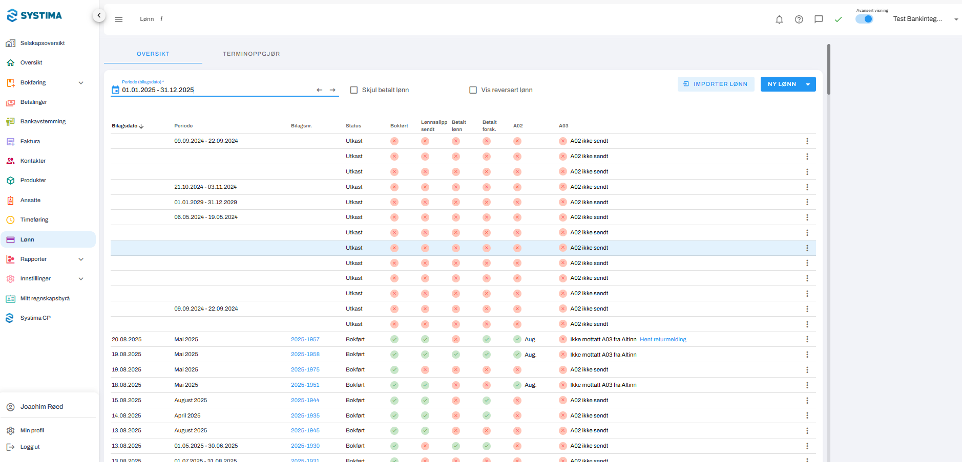 1. Gå til lønn, og klikk på den lønningen du ønsker å laste ned lønnsbilag for.
