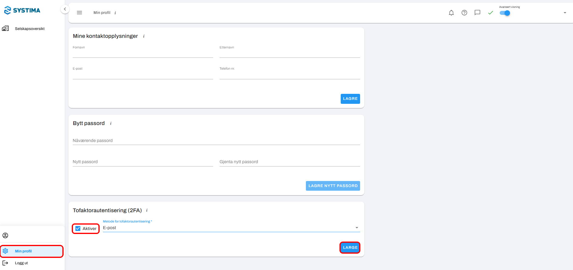 Når tofaktorautentisering er aktivert, må du gjennomføre følgende steg ved innlogging: