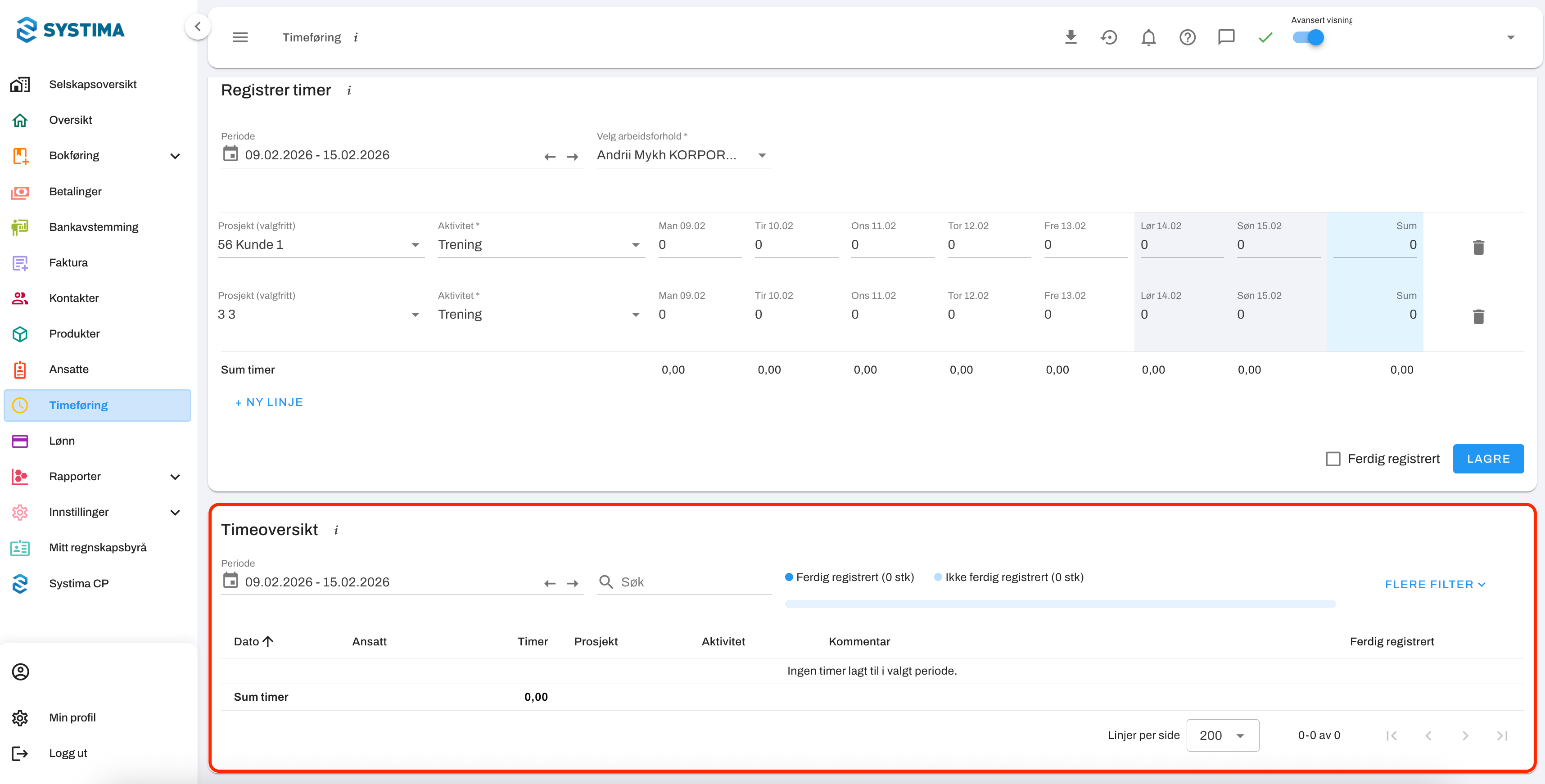 Finn feltet for Timeoversikt.