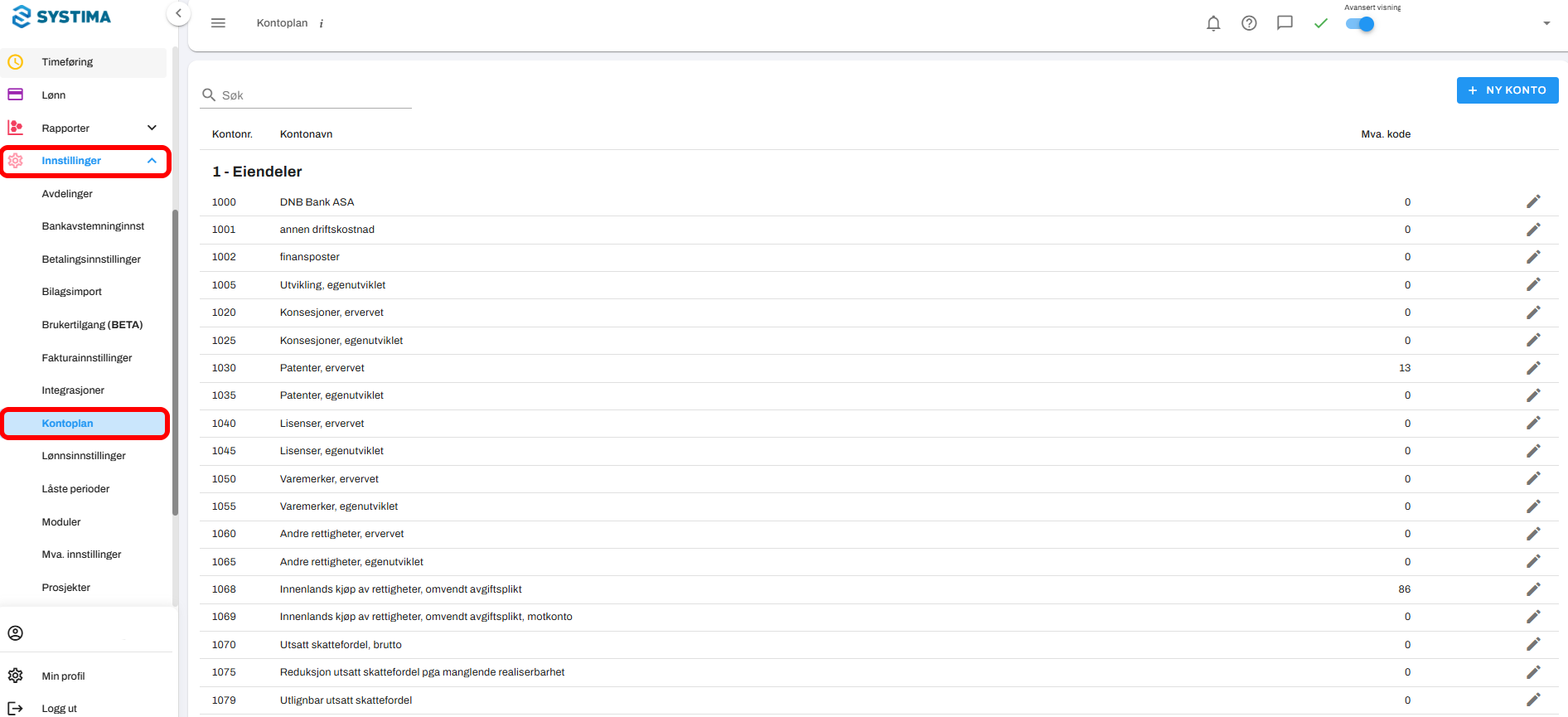 Gå til Innstillinger → Kontoplan.