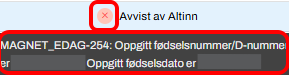 Feilmeldingen MAGNET_EDAG-515 oppstår når du rapporterer opplysninger på en person som har et inaktivt d-nummer.