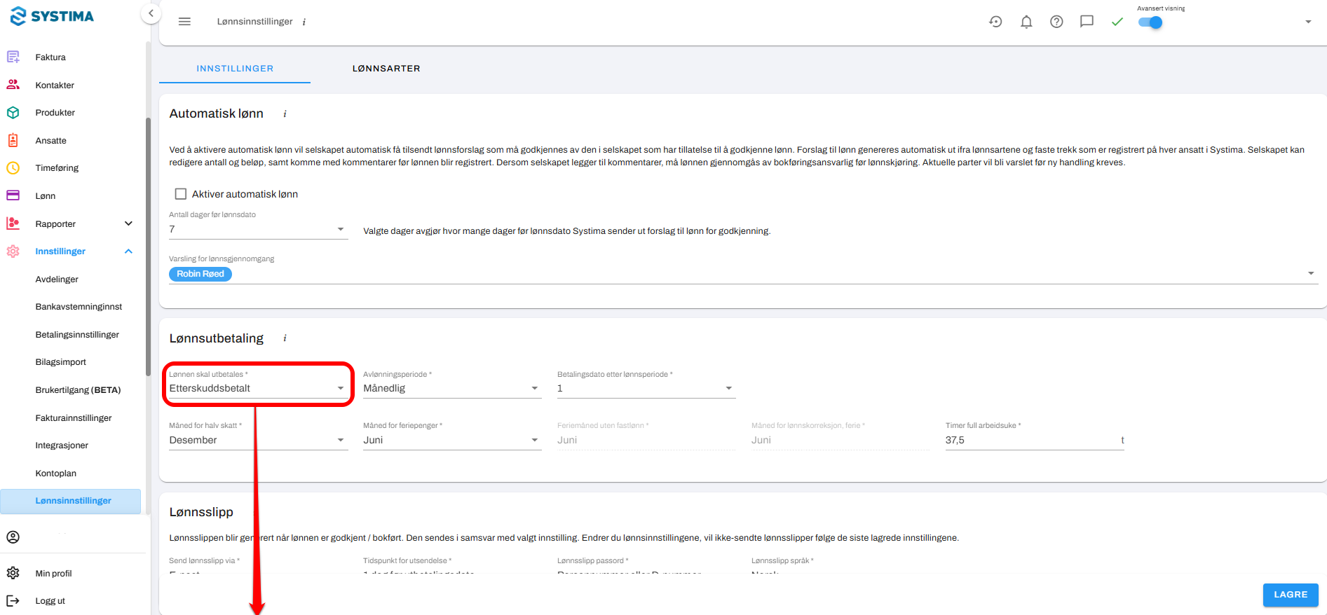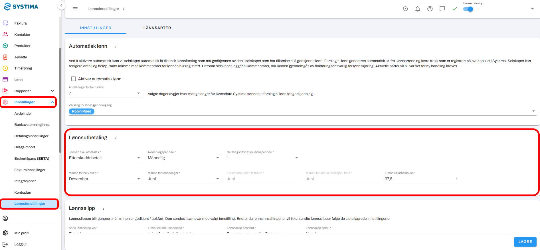 - Velg Lønnsinnstillinger