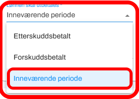 Under feltet "Lønn skal utbetales" velger du alternativet "inneværende måned".