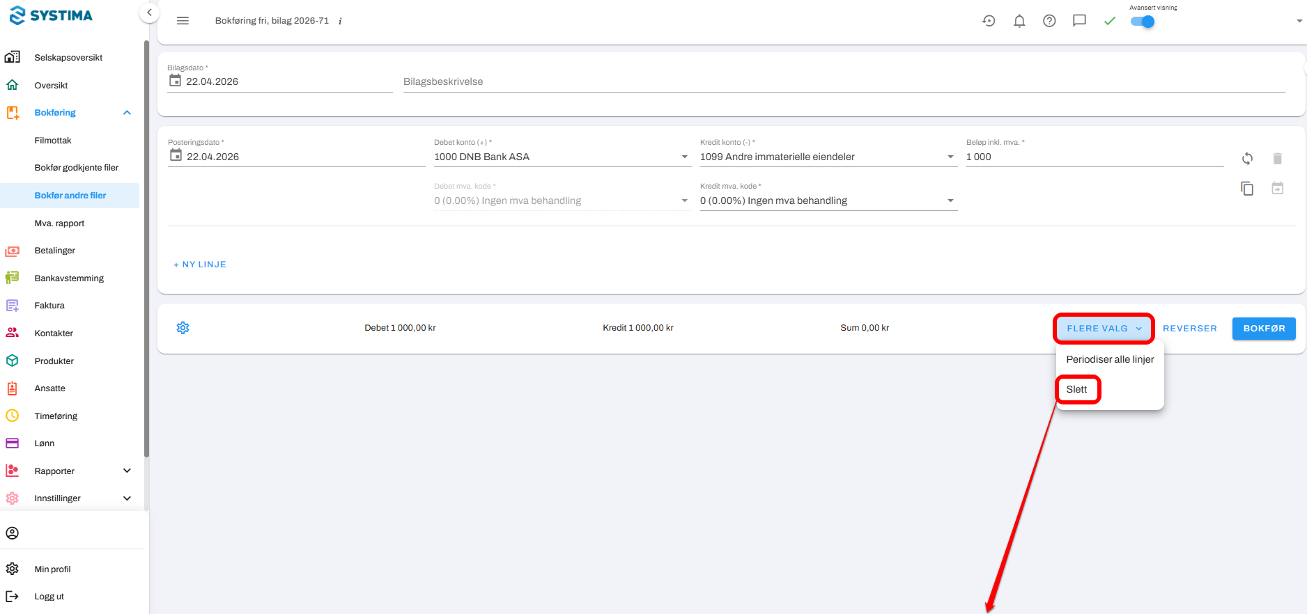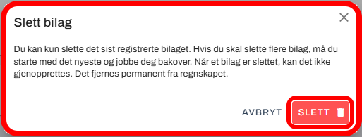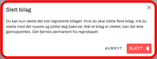 - Sørg for at du sletter riktig bilag før du bekrefter