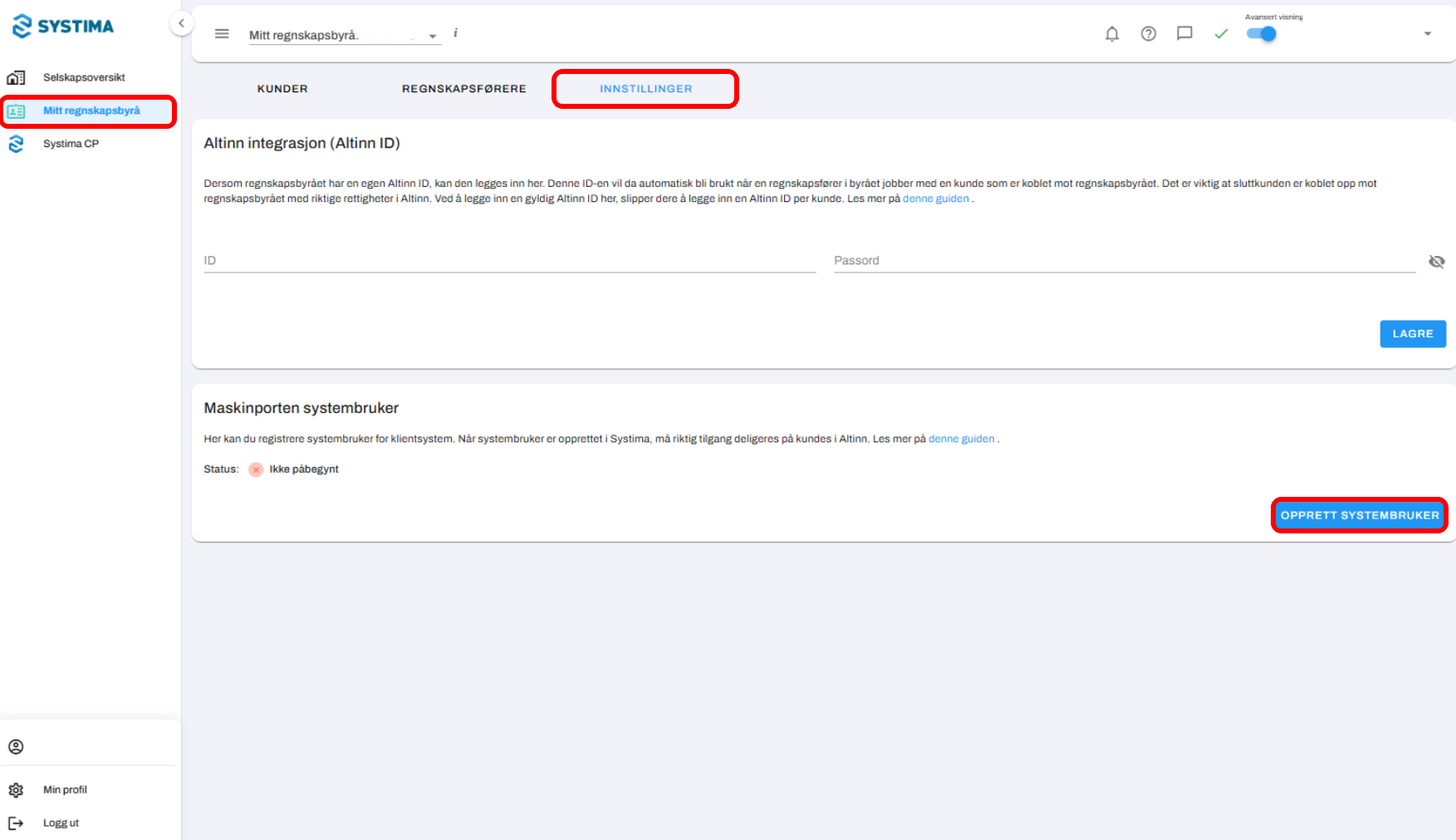 - Opprette systembruker i Mitt Regnskapsbyrå
